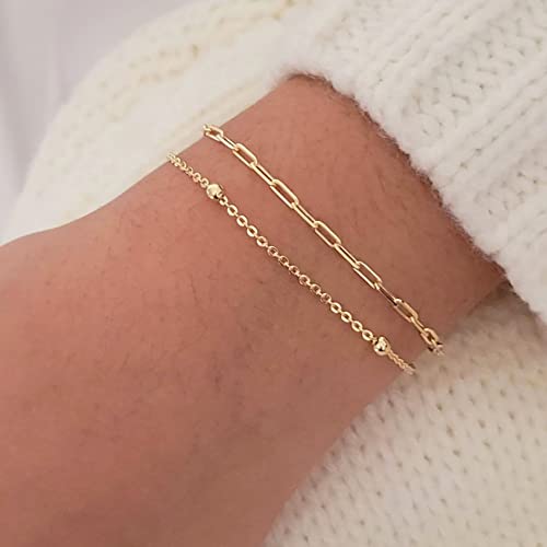 generic - سوار ذهبي انيق للنساء من بانسرت مطلي بالذهب عيار 14 قيراط، سوار سلسلة خفيف الوزن بتصميم متعرج ملتوي مع صندوق شبكي مع تعليقة مجوهرات بسيطة مصنوعة يدويا، نحاس، بدون احجار كريمة