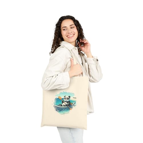 Generic - شنطة يد كبيرة توت كاجوال من قماش الباندا على البحر مغامرة الباندا | تصميم قارب المحيط اللطيف | حقيبة قماشية صديقة للبيئة قابلة لاعادة الاستخدام للنساء والاطفال مع سحاب - 826