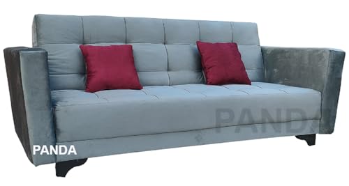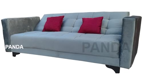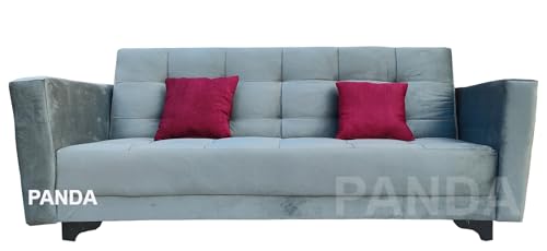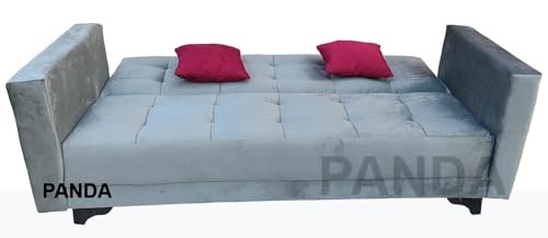 - كنبة سرير رمادي قطيفة مزودة بكتفين و2خددية نبيتي من باندا