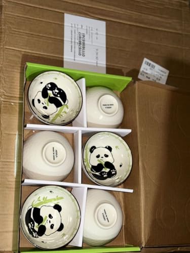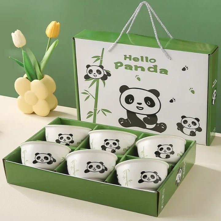 Generic - طقم أطباق بورسلين بتصميم الباندا، طقم من 6 قطع، أبيض وأخضر مع صندوق هدايا أنيق، سيراميك مزخرف بنمط الباندا والخيزران