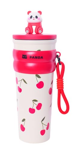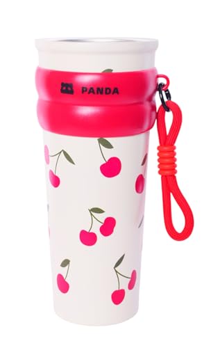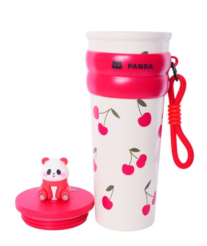 Generic - مج سفر حراري من الفولاذ المقاوم للصدأ مطبوع بغطاء من باندا 700 ملليلتر أحمر