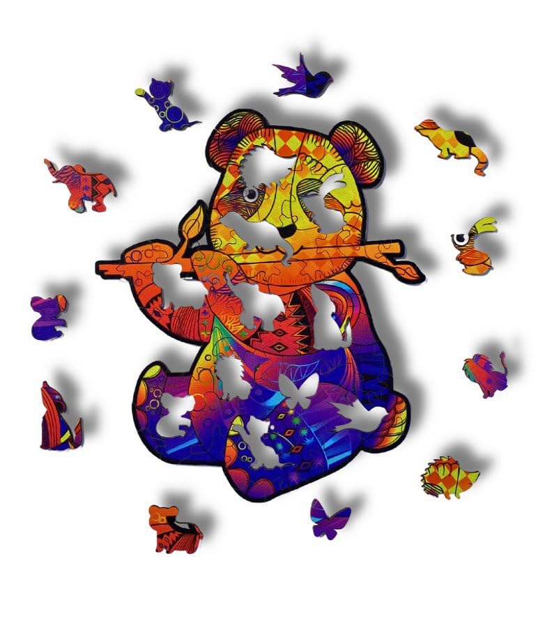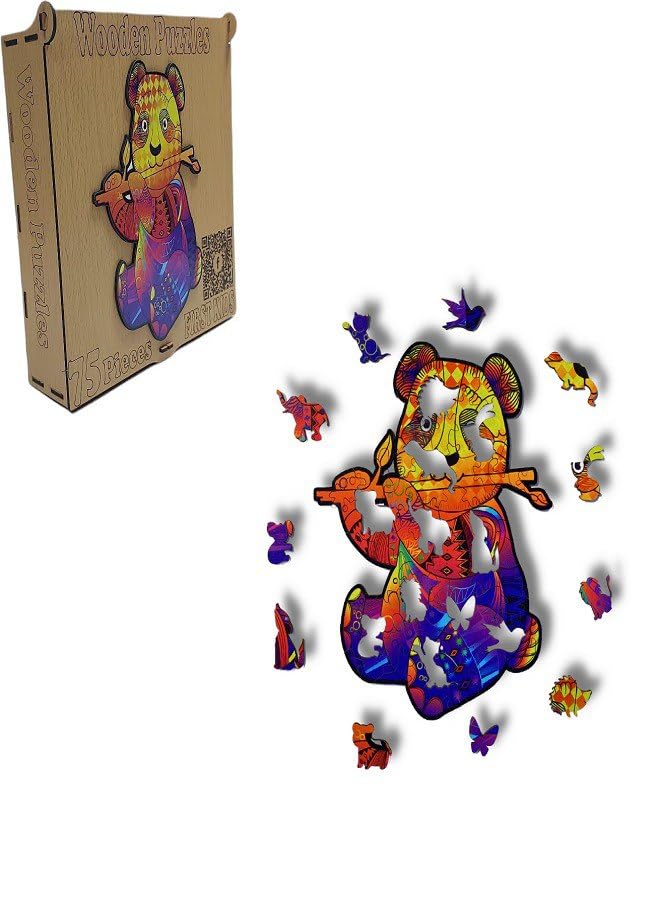 - أحجية خشبية على شكل باندا في صندوق خشبي (75 قطعة) أحجية فريدة وغير منتظمة، لعبة ممتعة وصعبة للبالغين والأطفال، هدية مثالية للديكور والفن.