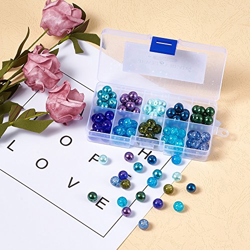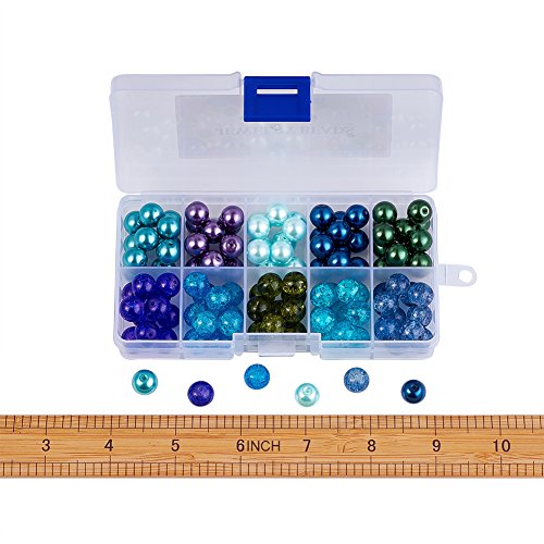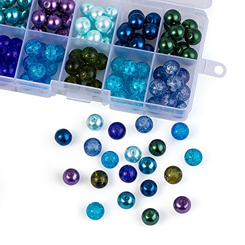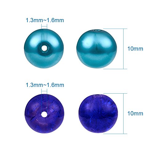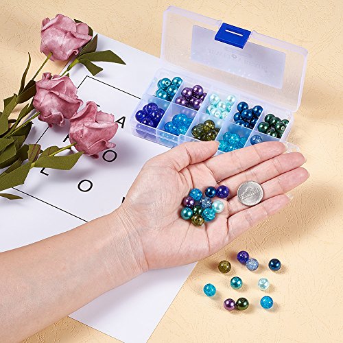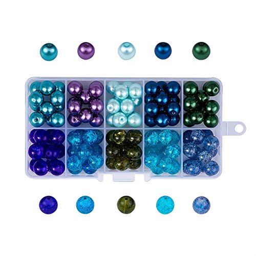 PH PandaHall - مجموعة خرز من 100 قطعة بانماط بحرية مختلطة و10 الوان شفافة بقياس 10 ملم بشكل مستدير مع فواصل لصنع المجوهرات- تتضمن كاللؤلؤ وخرز مطلي باندا هول