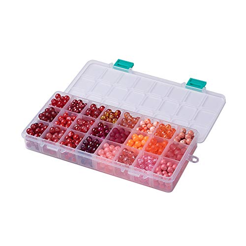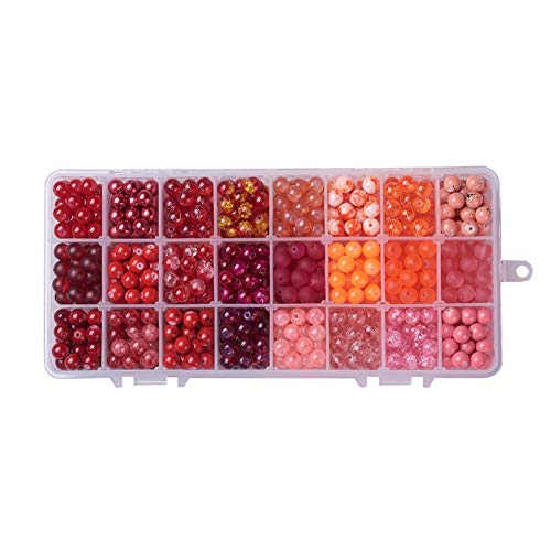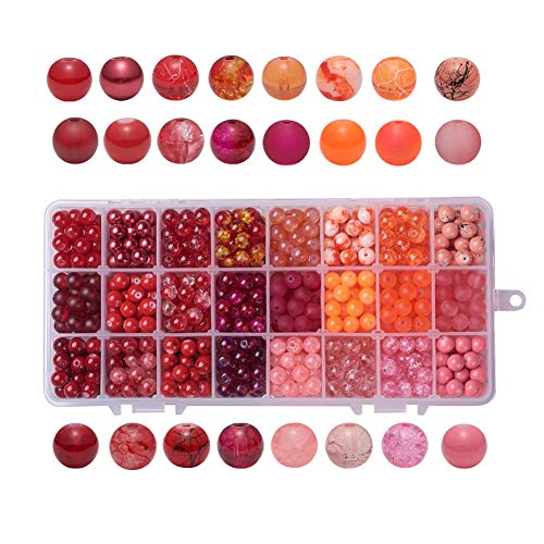 PH PandaHall - مجموعة خرز احمر بانماط مختلطة من الزجاج، 24 لون و8 ملم حجم، مع فواصل لصنع المجوهرات والقلائد والاساور لنفسك ومثالية للحرف (حوالي 648-720 قطعة في العبوة) من باندا هول