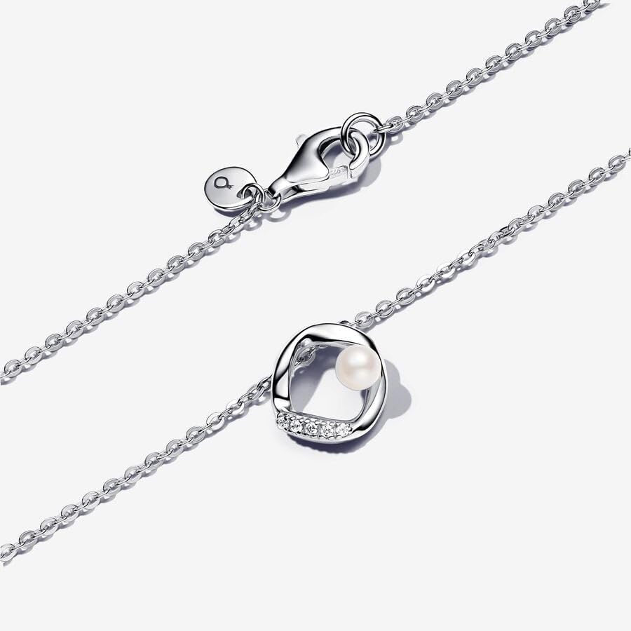 PANDORA - باندورا عقد من الفضة الاسترلينية عيار 925 مع مجموعة لؤلؤ المياه العذبة البيضاء ايسنس مقاس 45 للنساء