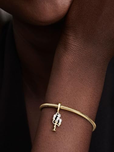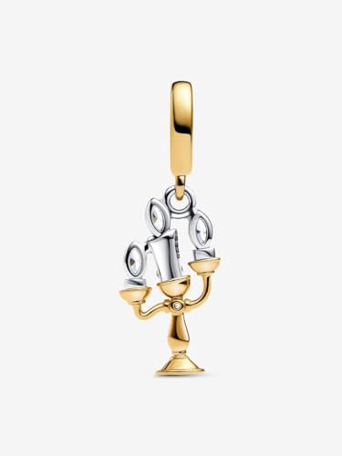 PANDORA - باندورا تعليقة نجمة متلألئة مصنوعة من الفضة الاسترلينية مع خليط معدني مطلي بالذهب عيار 14 قيراط وزركونيا مكعب، لحظات متوافقة، الأبعاد: 10 × 11.6 × 11.2 ملم، 762202C01