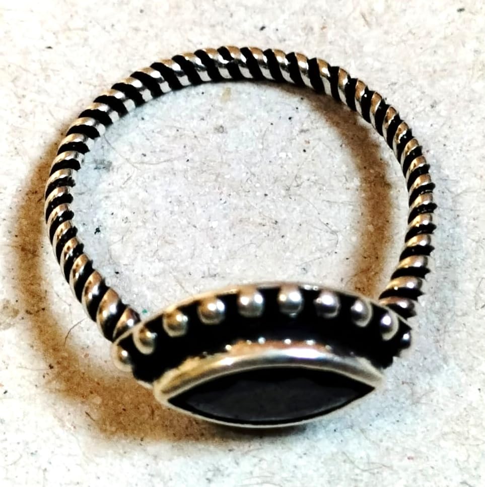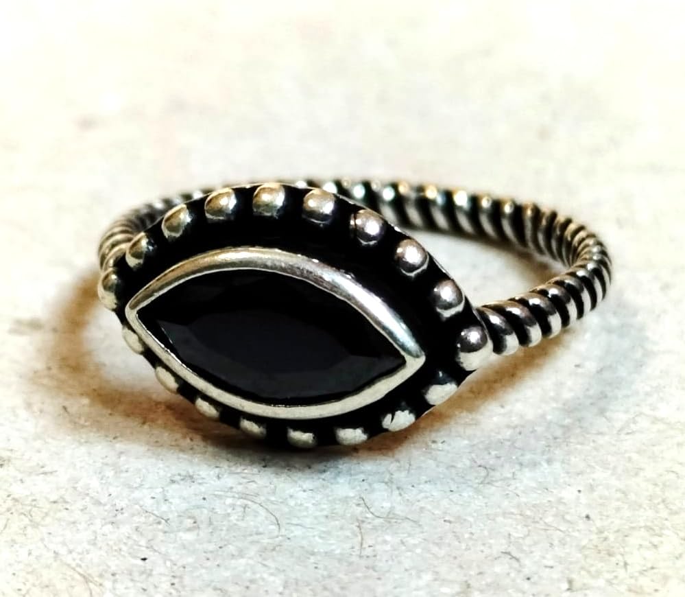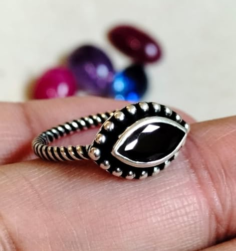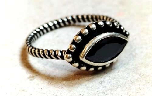 Generic - خاتم فضة شكل عين عيار 925 خفيف وبسيط PANDORA STYLE بحجر ياقوت أسود زفير رائع مناسب لجميع الاستخدامات ويمكن لبسه في اي اصبع للبالغين من الجنسين