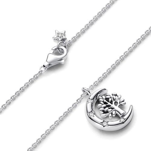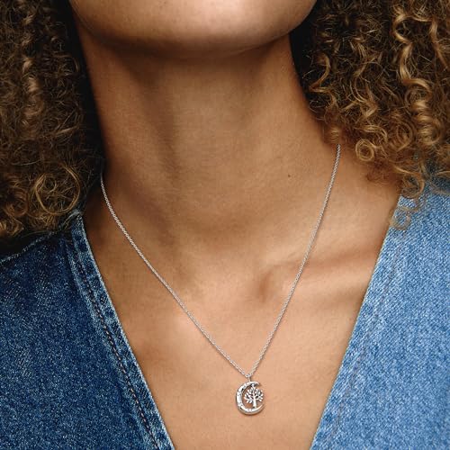PANDORA - سلسلة بدلاية على شكل قمر وشجرة اياة دوارة من الفضة الاسترليني مرصعة بأحجار زركونيا مقاس 50 سم من باندورا، 392992C01-50