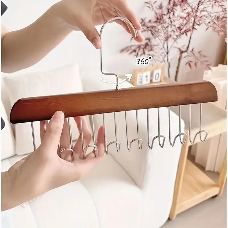 PANIXIA - شماعات خشبية بـ8 خطافات قابلة للتعديل للرجال والنساء من بانيكسيا، لتعليق الأحزمة والكرافتات والملابس الداخلية والسكارفات، مع خطافات قابلة للطي لتنظيم دولاب الملابس، قطعة واحدة (1)
