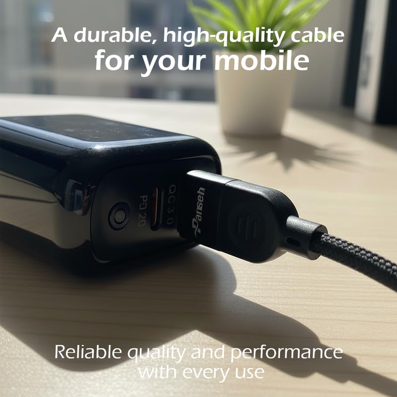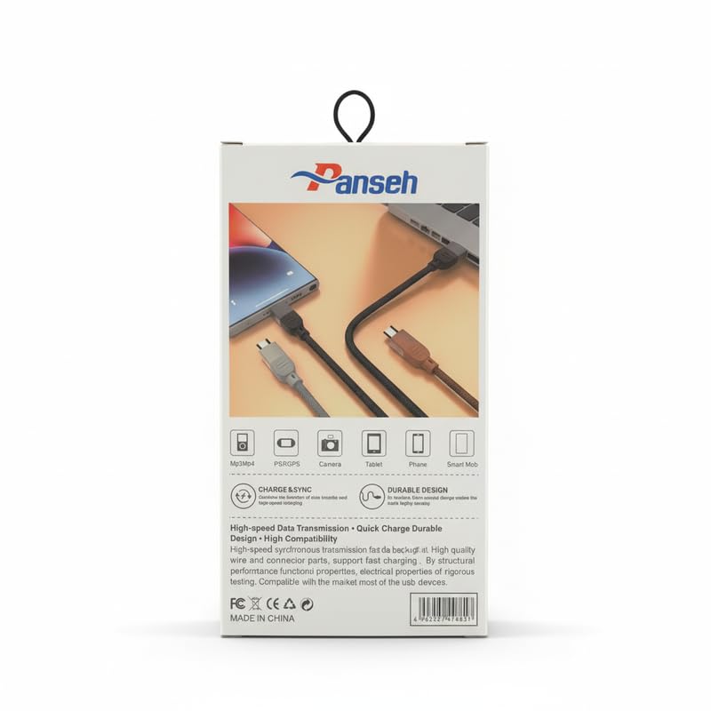 Panseh - كابل شحن سريع ونقل بيانات عالي السرعة من بانسيه - PC006 - طول الكابل 100 سم - كابل من النوع سي الى نوع سي - اسود
