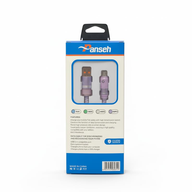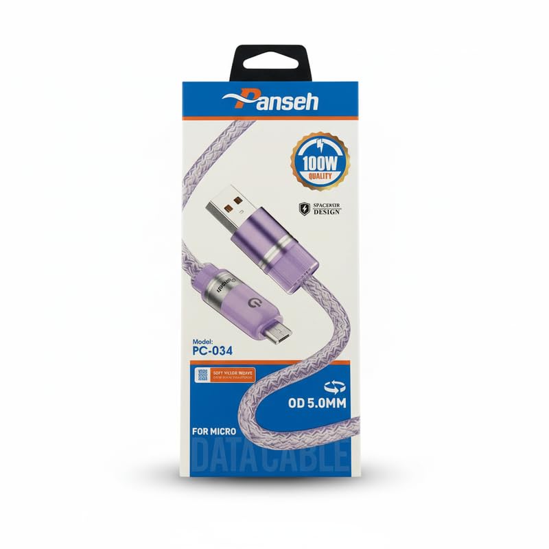 Panseh - كابل شحن سريع ونقل بيانات عالي السرعة من بانسيه - PC034 - طول الكابل 100 سم - كابل مايكرو - ارجواني
