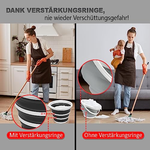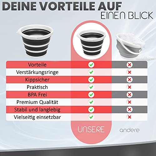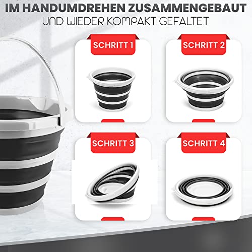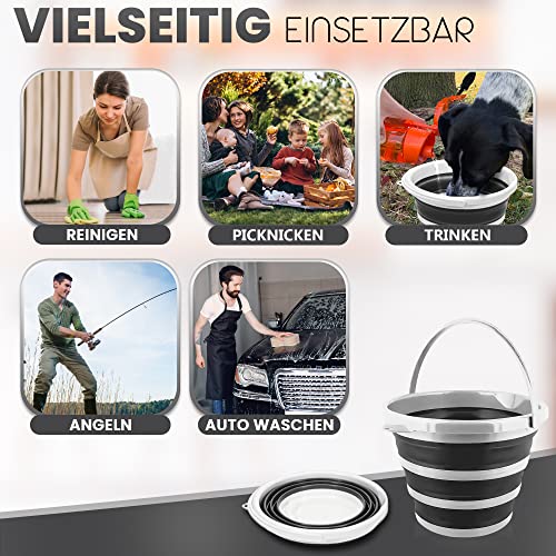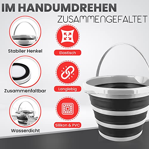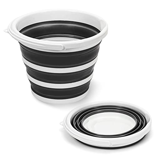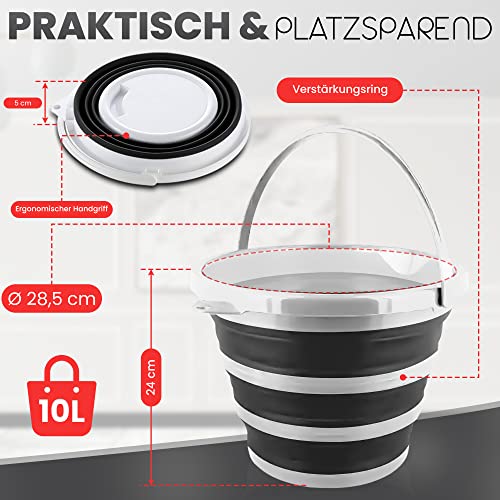 Pantelej - جردل من السيليكون قابل للطي بسعة 10 لتر مع مقبض من بانتيليج، مناسب للتخييم والشاطئ والغسيل وجردل الماء وصيد الأسماك وغسيل السيارات والسفر والتنزه وجردل تنظيف، لون أبيض وأسود