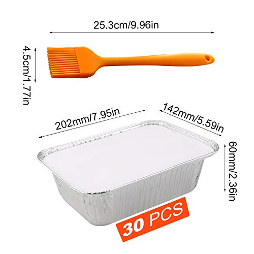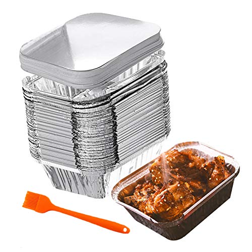 panthem - صواني من رقائق الالومنيوم للاستعمال مرة واحدة للشواء عبوة 30 قطعة سعة 1000 مل خبز مربعة حاويات طعام مع غطاء لخبز الكيك والطبخ والتجميد والتحميص والتخزين باسيم أسود