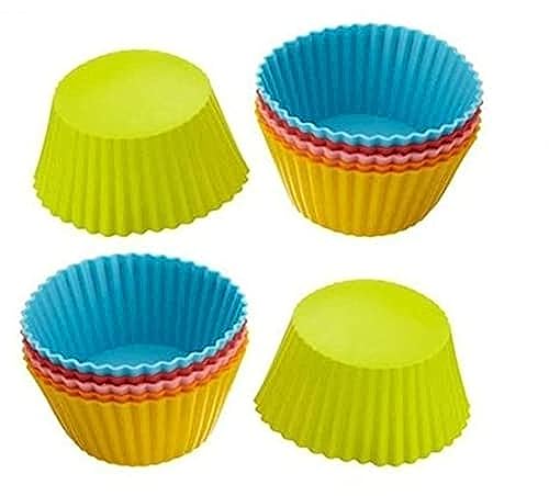 Spaceshoop - بطانات كب كيك بنمط اكواب خبز من سيليكون، تتضمن 12 قالب مافن بالوان نابضة بالحياة، بضمان للرضا والجودة لعام واحد، من بانتري اليمنتس - 5528