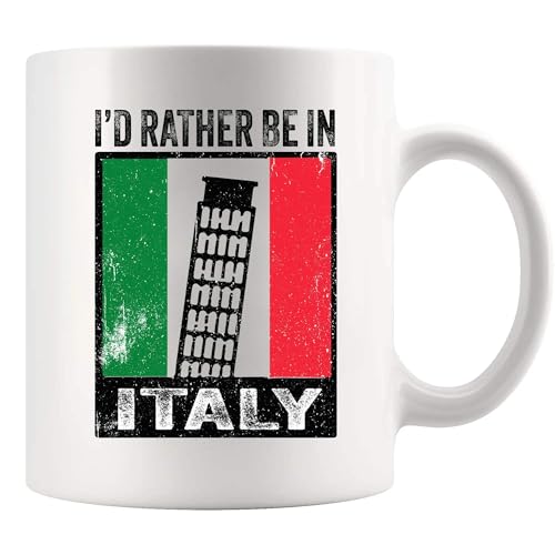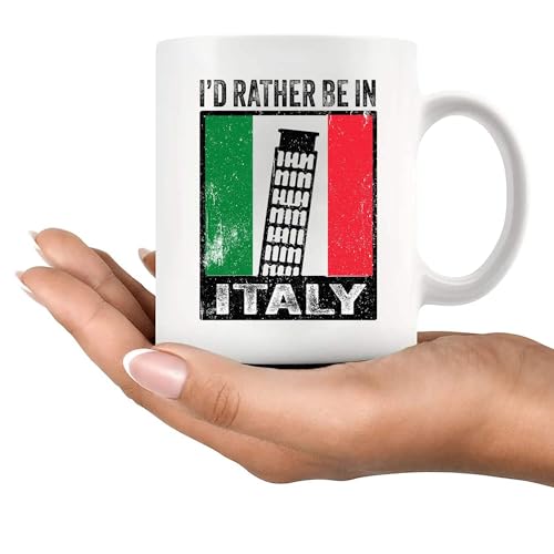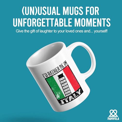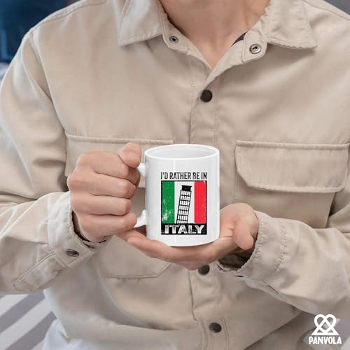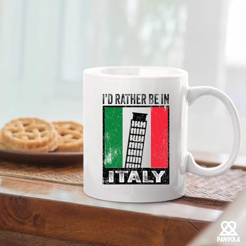 Panvola - مج سيراميك مزين بعبارة I'd Rather Be In Italy للرجال والنساء من بانفولا هدايا السفر الأخت والأخ والأصدقاء والصديقة والصديق والأم والأب كوب مبتكر بسعة 325 مل أبيض