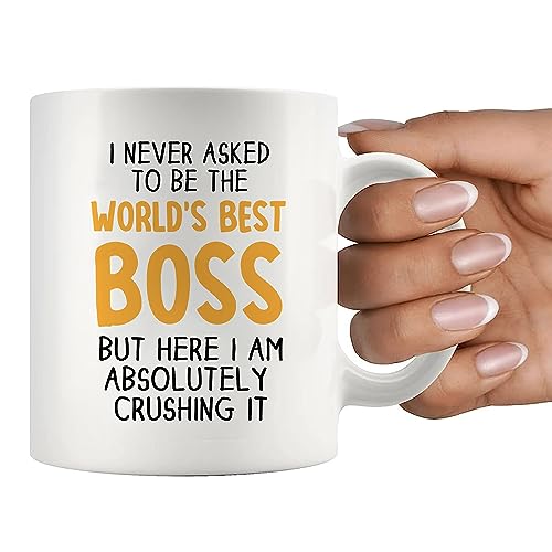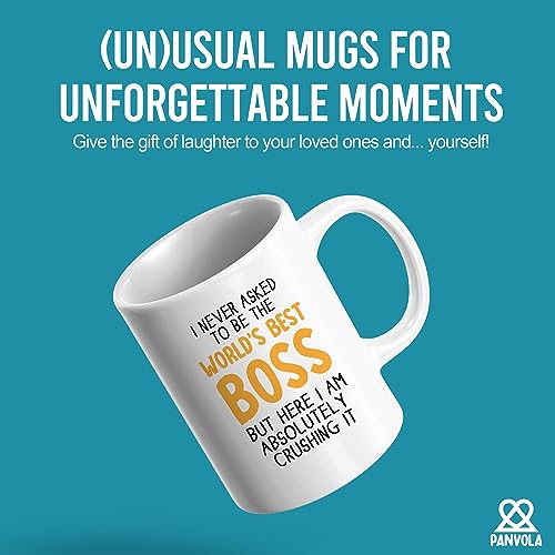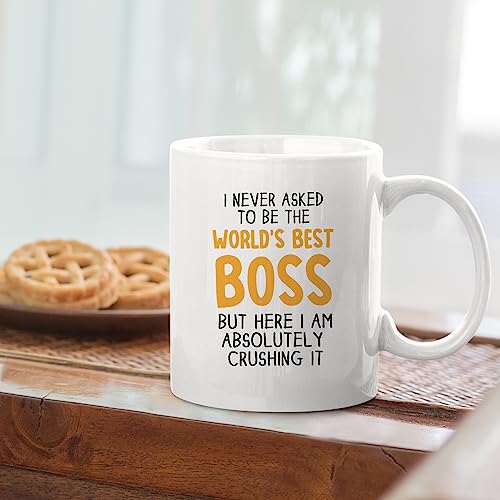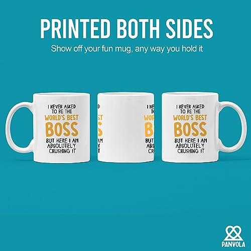 Panvola - مج للقهوة بطبعة عبارة I Never Asked To Be The» World's Best Boss»، كوب شراب لزميل العمل والمدير والموظف، أبيض، 312 مل، سيراميك