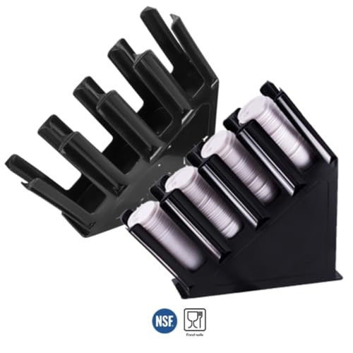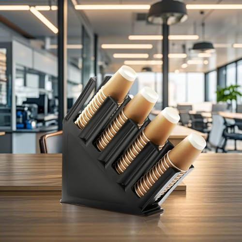 Generic - حامل أكواب ورقية وأغطية، موزع أكواب ورقية للاستعمال مرة واحدة مكون من 4 أقسام، حامل منظم لتخزين أكواب القهوة والغطاء لسطح الطاولة ومحطة القهوة والمطعم وغرفة الاستراحة، معتمد من مؤسسة ان اس اف، أسود