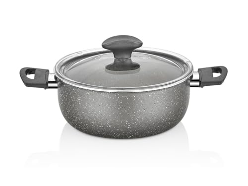 Papilla - قدر طبخ من بابيلا، مصنوع من الألومنيوم، لون رمادي، تشطيب جرانيت، سعة 6.3 لتر. يتضمن كاسرول عميق مع تصميم إرجونوميك وفتحة واسعة. يتميز بحفظ الحرارة وطلاء سهل التنظيف