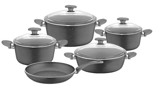 Papilla - طقم أواني الطبخ من بابيلا باللون الرمادي، متوافق مع مواقد الغاز، يتكون من 9 قطع