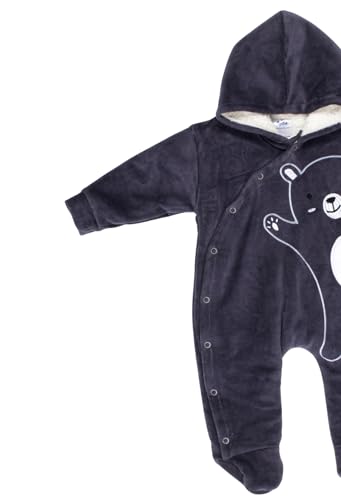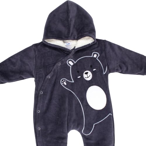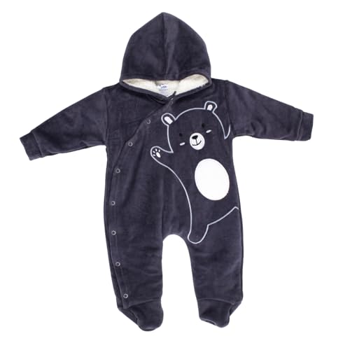 Papillon - سالوبيت قطيفة بكباسين بغطاء للرأس وأكمام طويلة مطرز برسمة دب للأولاد الصغار (عبوة من قطعة واحدة)