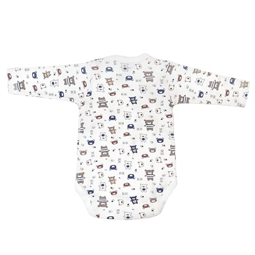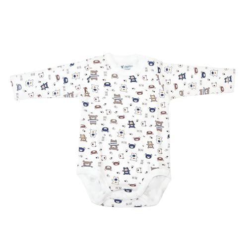Papillon - سالوبيت بكباسين قطن بأكمام طويلة بطبعة دب للجنسين من بابيلون، لون أبيض، مقاس 9 إلى 12 شهر