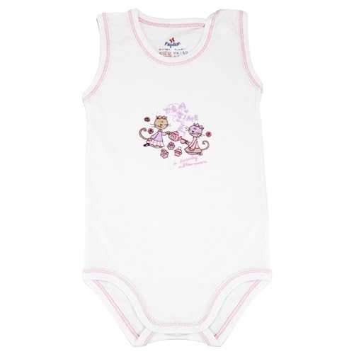 Papillon - Papillon Cotton Sleeveless Bodysuit Underwear Printed Cats For Girls-White, 6-9 Months