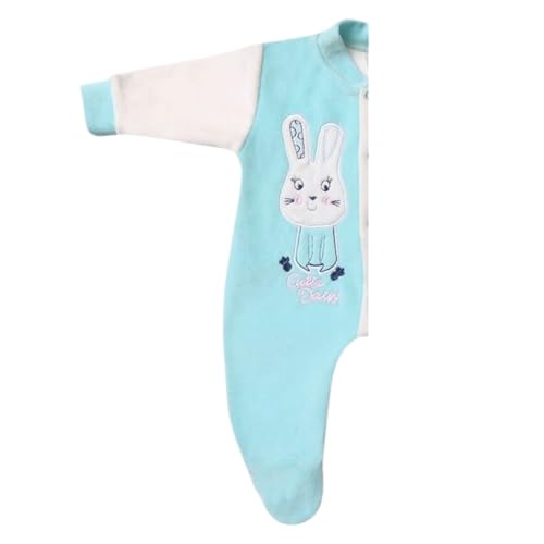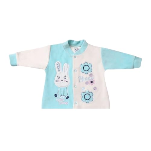 Papillon - سالوبيت قطيفة بكباسين وأكمام طويلة للبنات مطرز بأشكال من بابيون- لون أزرق فاتح واوف وايت لحديثي الولادة من 0 شهر