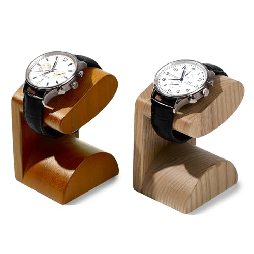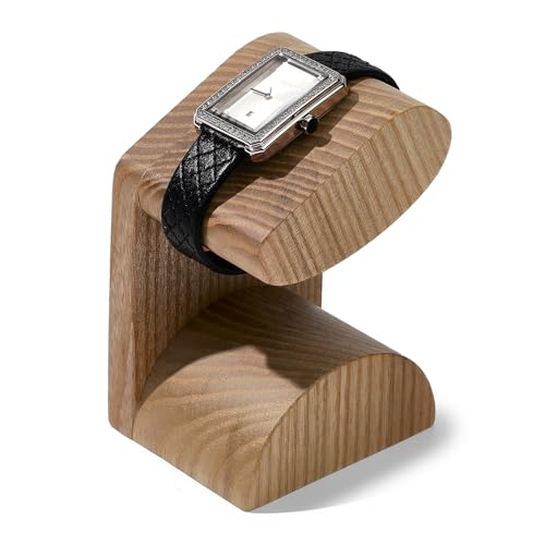Papten - حامل عرض ساعات من الخشب الصلب بتصميم حرف T من بابتن، حامل مجوهرات، منظم ساعات للرجال والنساء (لون خشب فاتح)