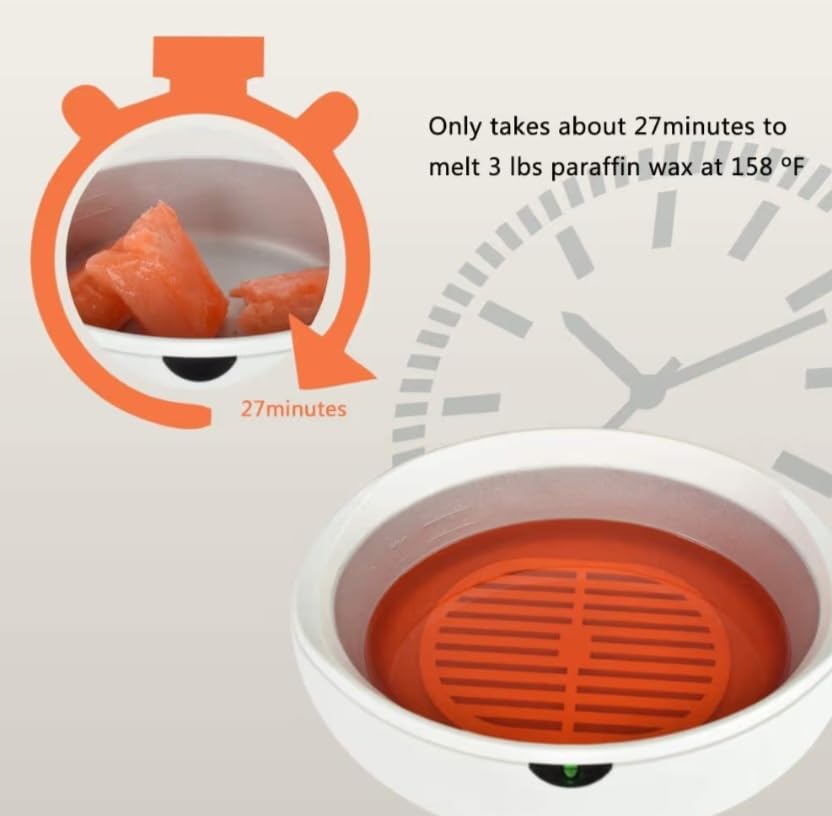 - سهل الاستخدام: تصميم بسيط وعملي يسمح بالتشغيل السهل والتحكم الدقيق في درجة حرارة الشمع المذاب