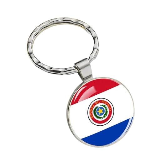 Generic - سلسلة مفاتيح بتصميم علم باراغواي، تصميم العلم الوطني ثلاثي الالوان، حلقة مفاتيح معدنية فضية تذكارية لمشجعي فريق كرة القدم