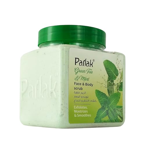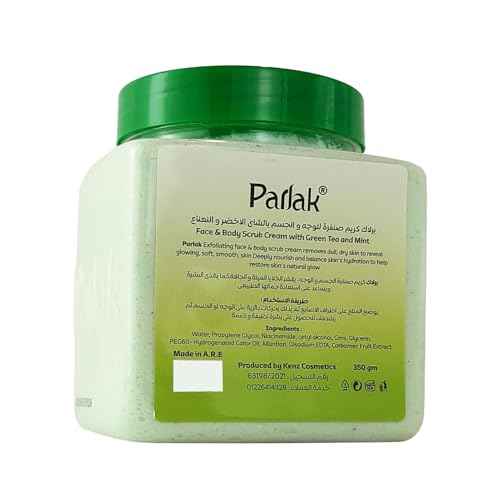 PARLAK - كريم تقشير الوجه والجسم برائحة الشاي الأخضر والنعناع من بارلاك، 350 جم