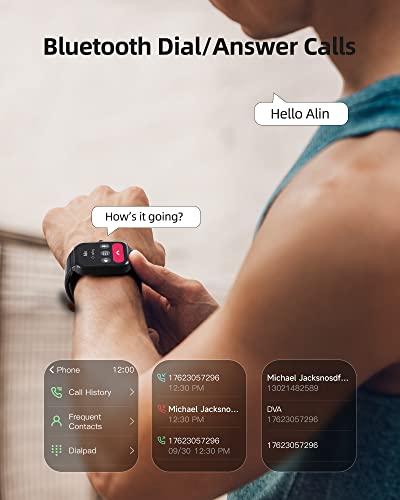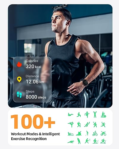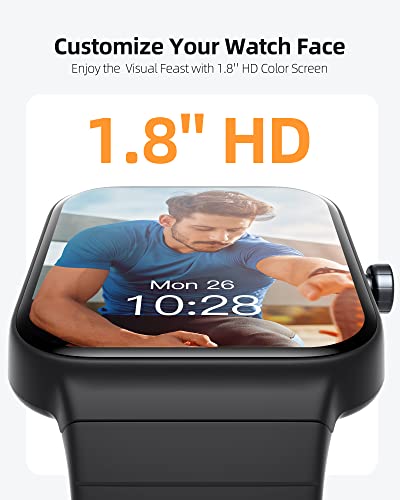 - 【شاشة HD عالية الدقة تعمل باللمس بالكامل مقاس 1.8 بوصة وراحة خفيفة】 توفر شاشة اللمس الكاملة HD مقاس 1.8 بوصة صورًا رائعة وواجهة سهلة الاستخدام لإجراء مكالماتك المهمة. يمكنك حتى تخصيص صورتك المفضلة كخلفية لمينا الساعة الرياضية. هناك دائمًا نمط مينا يجسد مزاجك وشخصيتك بشكل مثالي. كما أن أجهزة تتبع النشاط والساعات الذكية تزن 39 جم فقط، ولن تلاحظ هذه القوة على معصمك أثناء التدريبات والروتين اليومي.