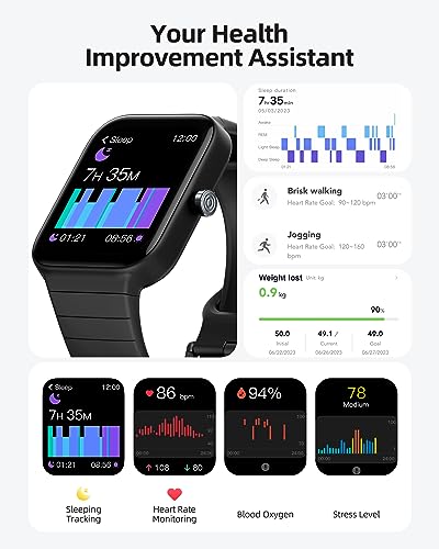 - 【رفيقك الصحي على مدار 24 ساعة】يمكن لهذه الساعة الذكية المتوافقة مع هواتف أندرويد وآيفون أن تخبرك بما لا يمكنك رؤيته بنفسك: معدل ضربات القلب ومراقبة النوم والأكسجين في الدم ومستوى التوتر وأكثر من ذلك. الساعة هي رفيقك المثالي الواعي بالصحة، حتى أثناء النوم.