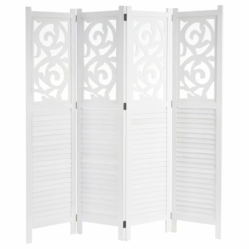 Generic - مقسم غرف خشبي 4 ألواح،برافان ,فواصل للغرف ,مقسم غرف خشب,لون ابيض