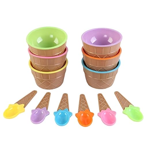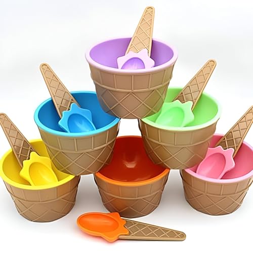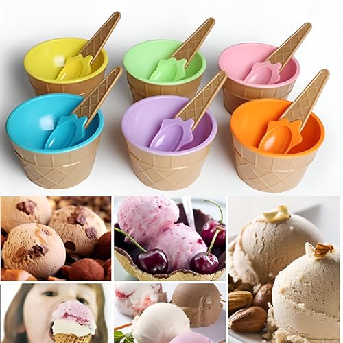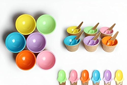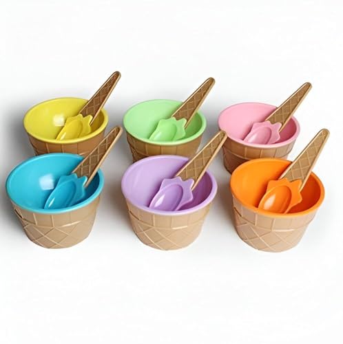 Generic - اكواب ايس كريم جاهزة للحفلات - بلاستيك غير قابل للكسر مع ملاعق، خالية من BPA، الوان متنوعة، مجموعة من 6 قطع للاحتفالات والاستخدام الكاجوال