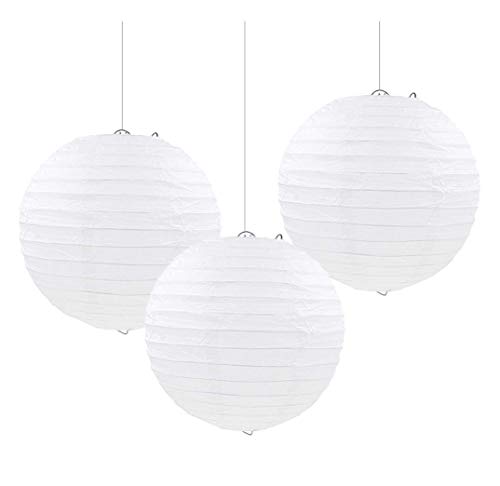 PARTY TIME - بارتي تايم، 3 قطع أباجورة ورقية معلقة بتصميم صيني يدوي الصنع لتزيين المهرجانات وأعياد الميلاد والزفاف وحفلات المنزل، فوانيس 30.48 سم (أبيض)
