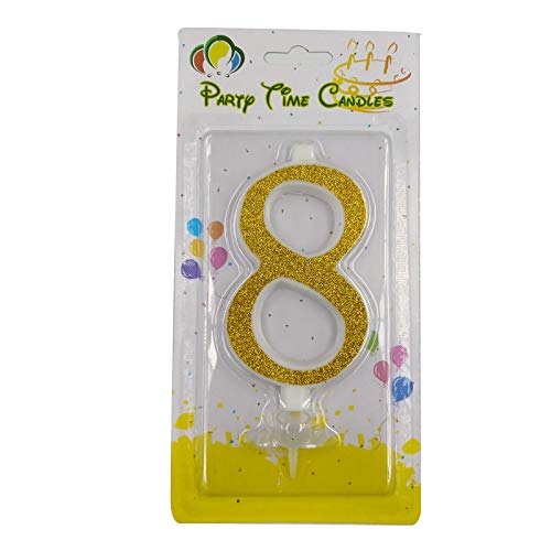 PARTY TIME - بارتي تايم شمعة عيد ميلاد غير معطرة على شكل رقم 8 - قطعة واحدة، لون ذهبي