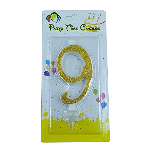 Party Time - شمعة عيد ميلاد غير معطرة على شكل رقم 9 - قطعة واحدة، لون ذهبي