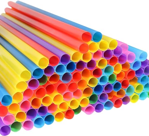 Spaceshoop - عبوة اقتصادية للحفلات - 200 شفاطة شرب للاستعمال مرة واحدة - ملونة، وطويلة، ومرنة - بقطر 0.58 سم، وطول 25.9 سم