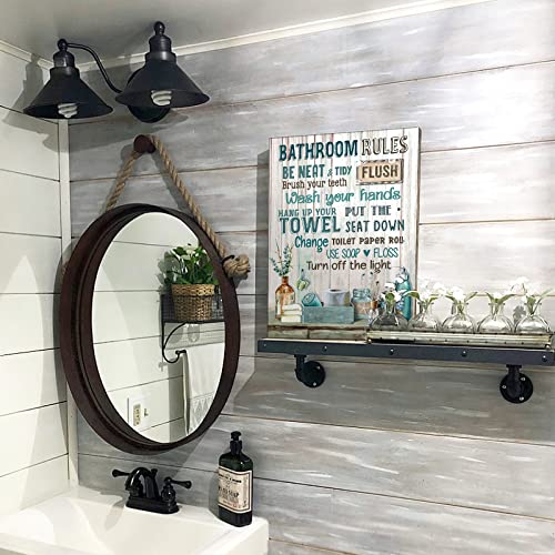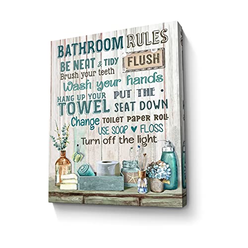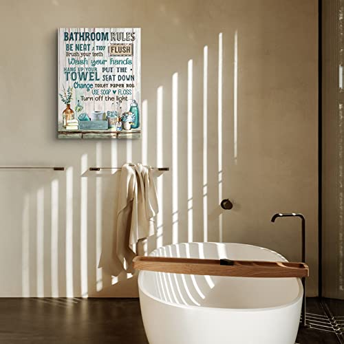 Parylore - لوحة فنية جدارية من القماش لديكور الحمام بتصميم ريفي بلون فيروزي حديثة مؤطرة للحمام والمرحاض وغرفة الغسيل مقاس 12 × 16 انش
