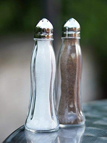 Pasabahce - طقم توزيع الملح والفلفل 80030 من الزجاج والفولاذ المقاوم للصدأ وآمن للاستخدام في غسالة الأطباق من باساباهس، لون أبيض وأسود، قطعتان