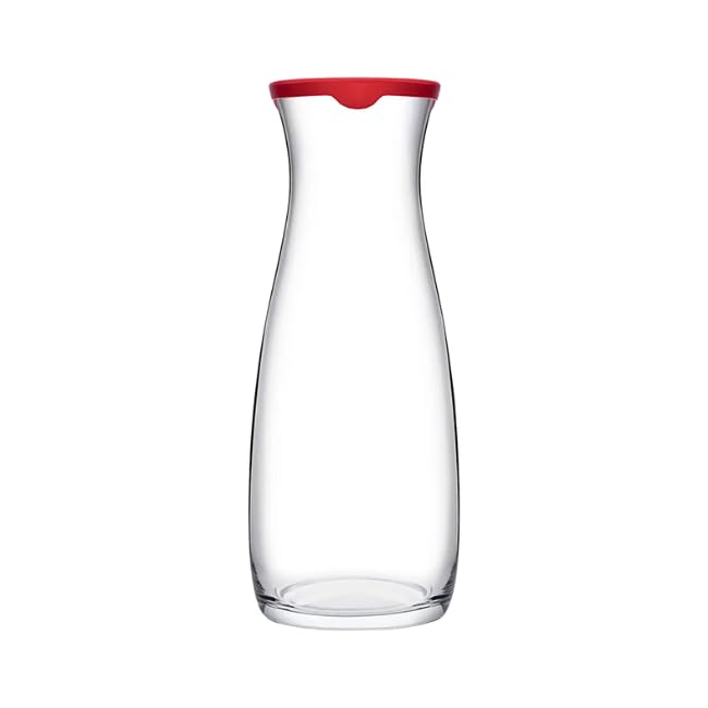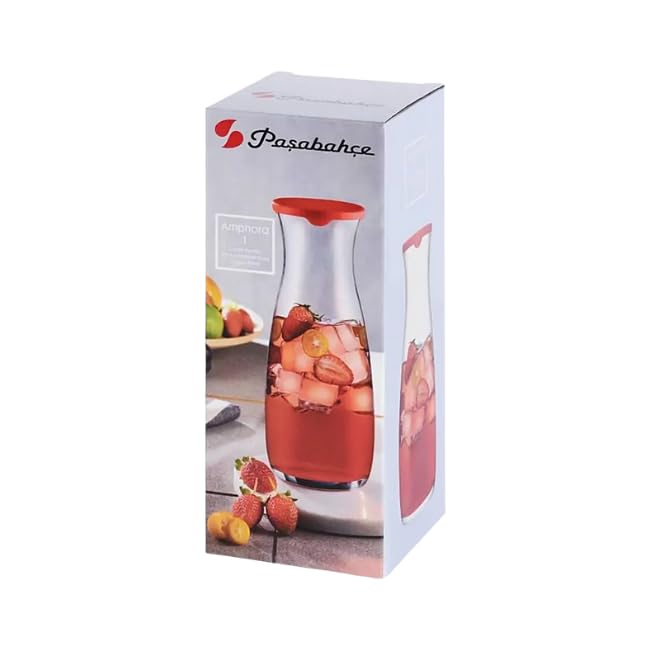Pasabahce - زجاجة زجاج امفورا من باساباهس، قطعة واحدة، شفافة مع غطاء أحمر، سعة 1180 مل - صناعة تركية