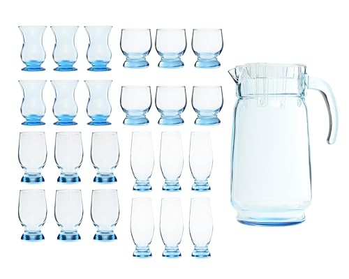 Pasabahce - طقم أكواب زجاجية اكواتيك بطراز قديم من باشاباتشي،، تركواز - مجموعة من 25 قطعة
