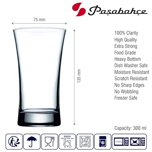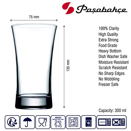 Pasabahce - طقم اكواب زجاجية للماء والعصير من باشابتشي 6 قطعة 300 مل شفاف باساباهسي