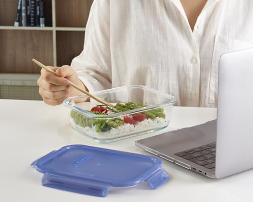 Pasabahce - طقم اوعية زجاجية لوكي لحفظ الطعام من قطعتين مقاس 19.8 × 14.8 سم مناسب للمنزل والمطاعم مصنوع من مواد متينة ممتازة - لون ازرق، Pa-530186-04-6190 من باساباهس
