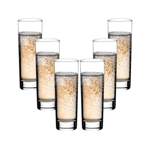Pasabahce - طقم أكواب هاي بول جانبية طويلة من باشابتشي، للمشروبات الباردة والماء، (سعة 290 مل)، 6 زجاج، شفاف