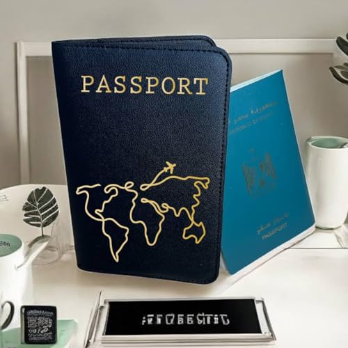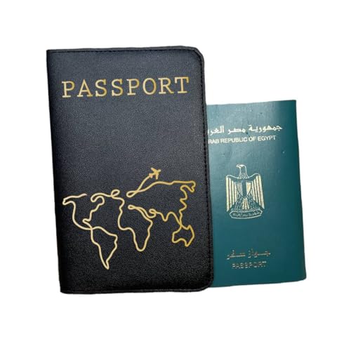 Generic - محفظة جواز سفر من الجلد الصناعي للجنسين، بتصميم خريطة السفر باللون الأسود، متعددة الأقسام ومتينة