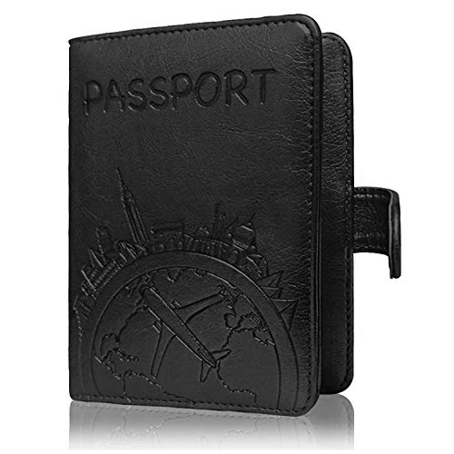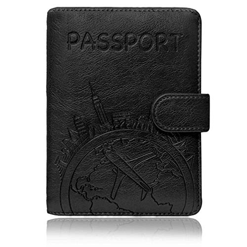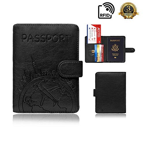 Talent.llc - محفظة جلدية لحمل جواز السفر - غطاء جواز سفر بخاصية حجب تقنية تحديد الهوية بموجات الراديو مع زر مغناطيسي للنساء والرجال (اسود - خريطة)