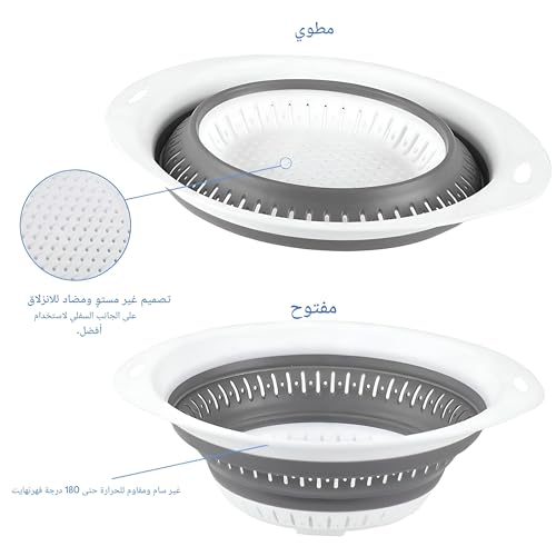 - مصممة للتخزين الأمثل، يسمح الجانب القابل للطي لهذه المصفاة بتقليل حجمها عند عدم الاستخدام. تتيح هذه الميزة سهولة التخزين داخل أدراج المطبخ أو حتى على الجدران مع زيادة مساحة المطبخ، مما يجعلها ضرورية لتوفير المساحة لأي مطبخ.