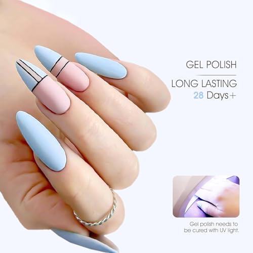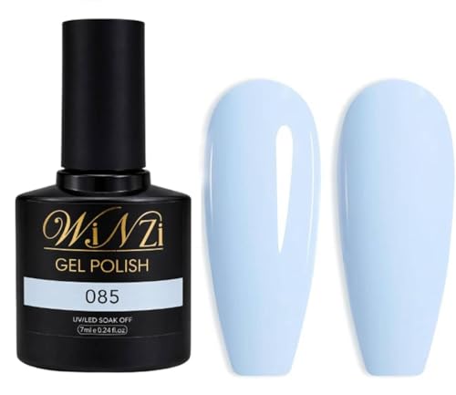 WINZI - طلاء أظافر جل ناعم بضوء ليد بالأشعة فوق البنفسجية، تطبيق سلس، لمسة نهائية شديدة اللمعان، لون منعش لصالونات المانيكير وفن الأظافر بنفسك في المنزل، 7 مل، لون أزرق باستيل (085)